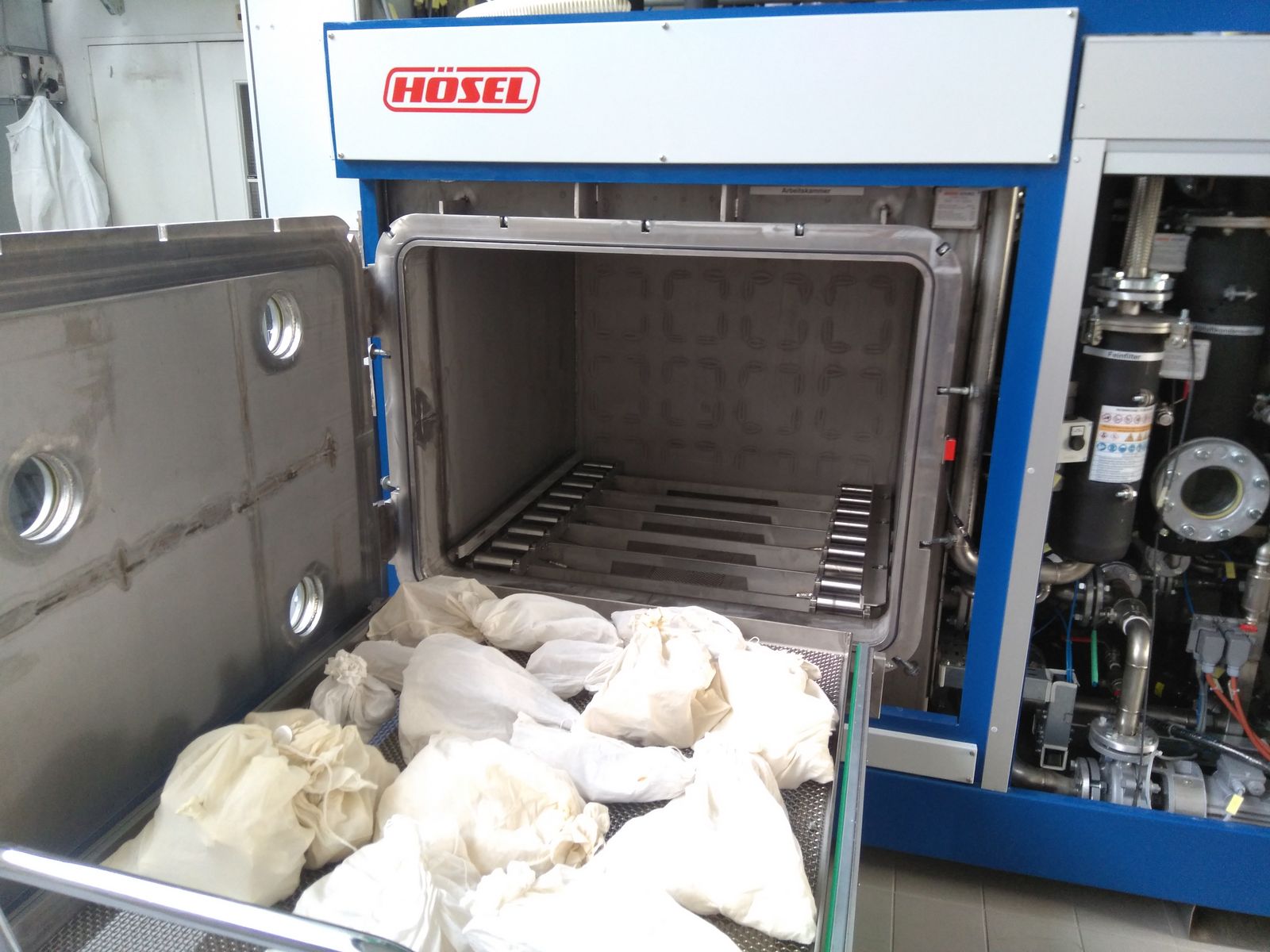 Auf den ersten Blick sieht die Maschine irgendwie wie ein Geschirrspüler aus. Oder wie ein Backofen. Nur viel grösser. Die Vielzahl an Pumpen, Filteranlagen und Schläuchen daneben macht letztlich definitiv klar, dass es sich um etwas ganz anders handelt. Präparator Martin Troxler lacht: «Willkommen bei unserem Ungetüm». Willkommen bei der Knochenentfettungsanlage im Naturhistorischen Museum Bern.