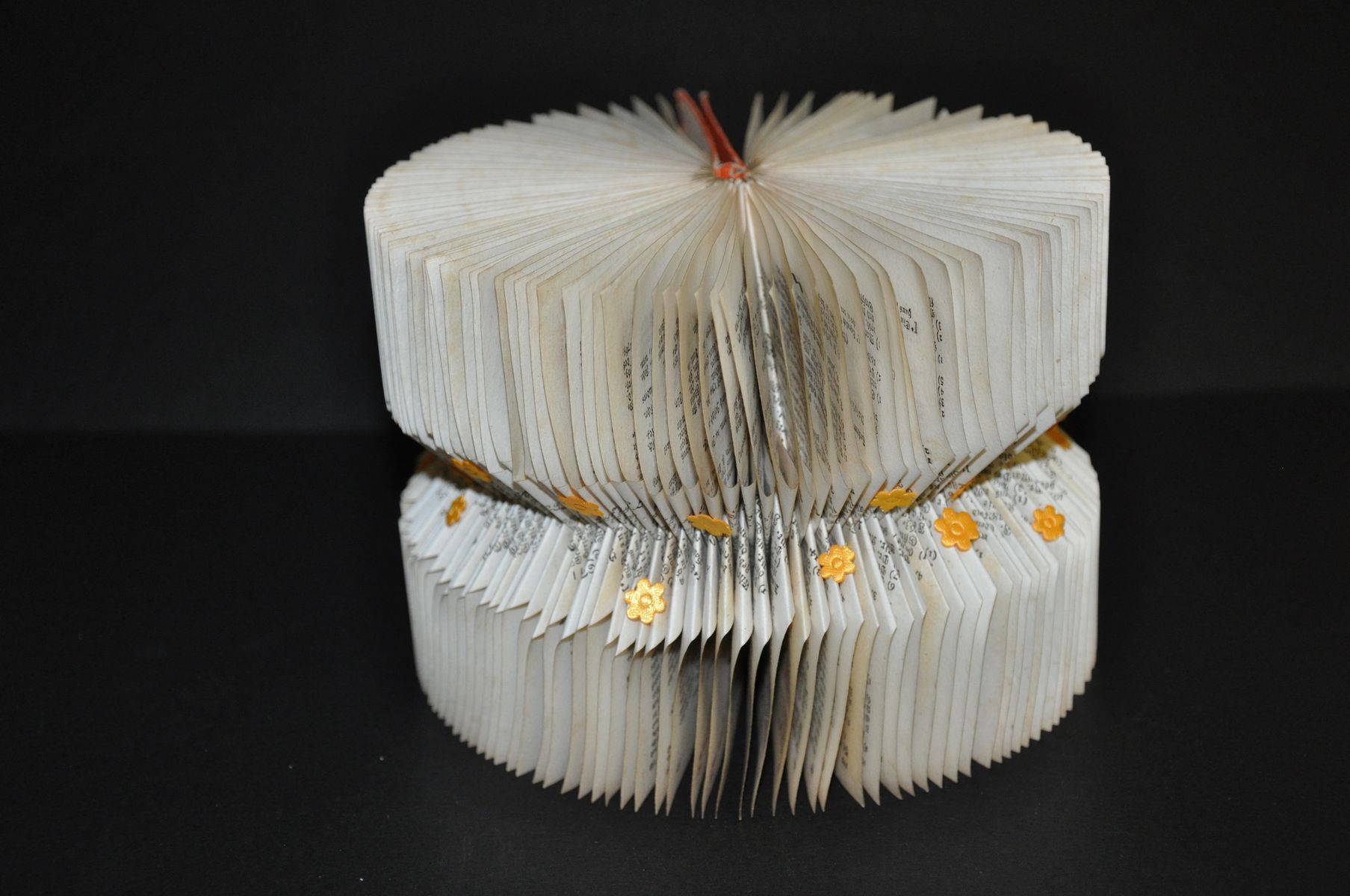 Das richtige Buch für das richtige Objekt zu finden, sei in zweierlei Hinsicht nicht ganz einfach gewesen. Je nach Papierqualität bestand das Risiko, dass das Papier durchs Falten bricht. Aber auch mit Blick auf die Inszenierung machte sich von Fischer viele Gedanken zur Bücherwahl. Für einen Schuh verwendete sie beispielsweise das Papier aus einem Buch zur Schlacht von Murten, wo Soldaten noch zu Fuss in die Schlacht gezogen seien.