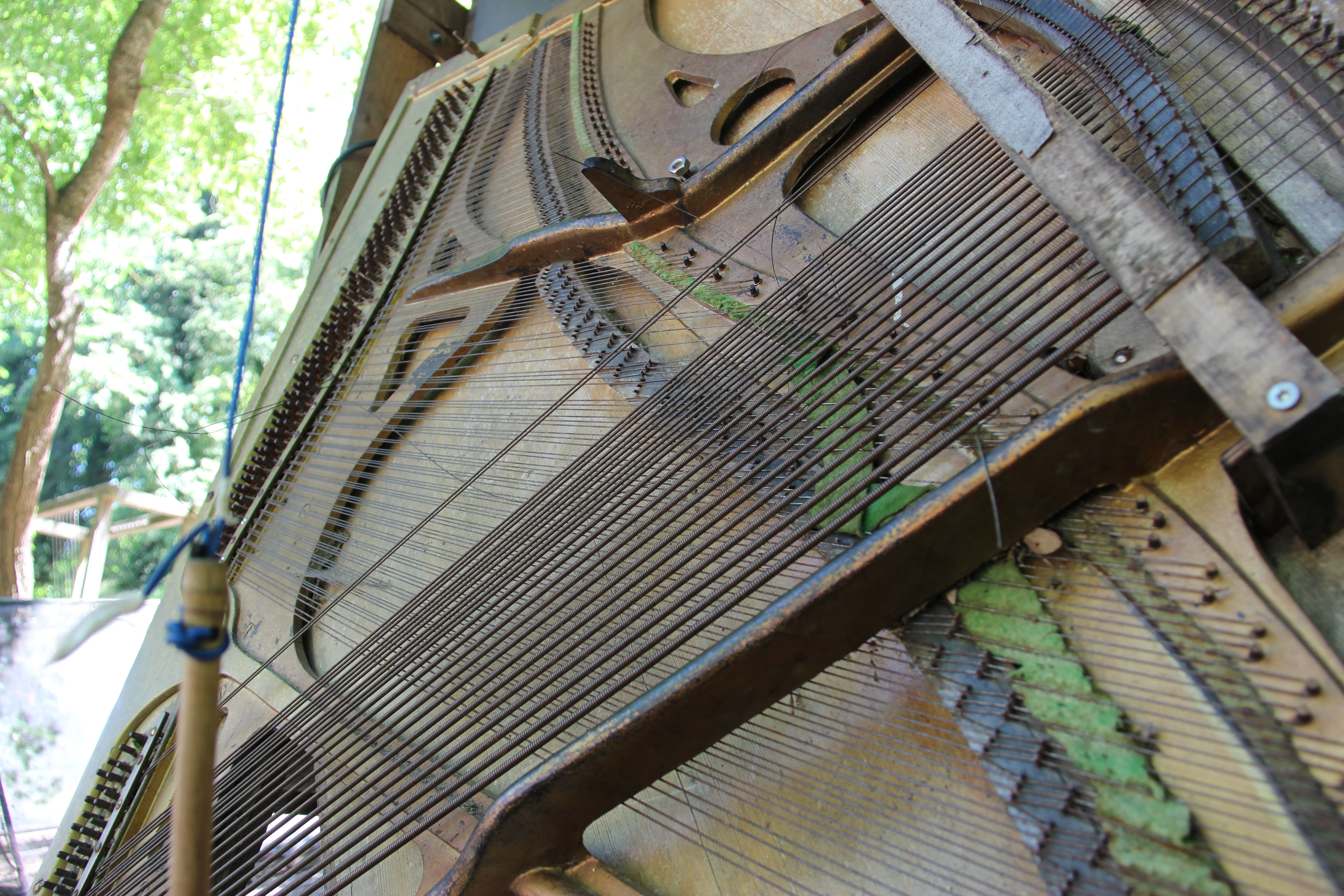 Ein ausrangiertes Klavier lädt zum Klimpern ein.