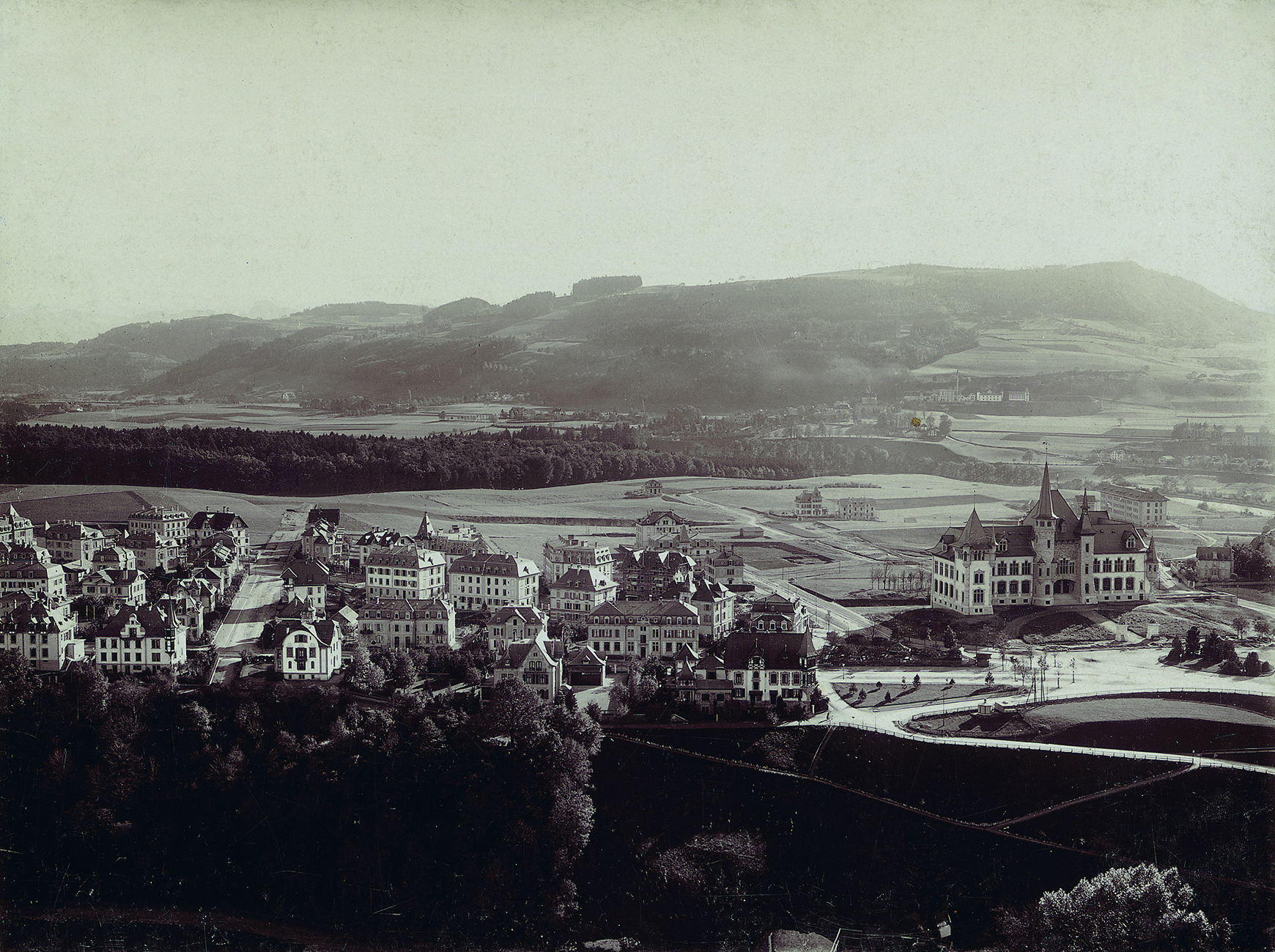Die Umwandlung der burgerlichen Stadtfelder in Bauland - hier das in Überbauung begriffene Kirchenfeld - finanzierte die burgerlichen Kulturinvestitionen - hier das eben erstellte Historische Museum.