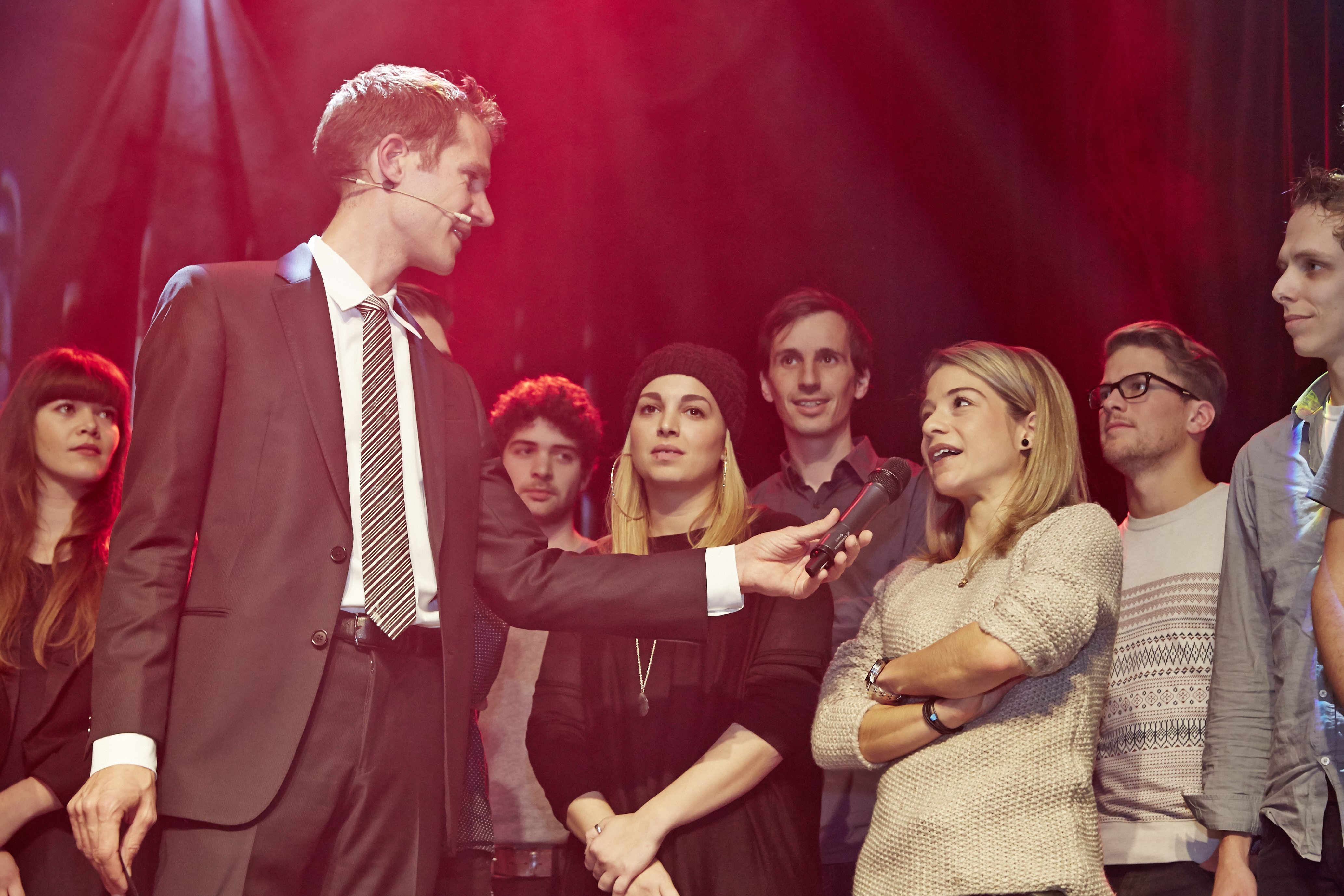 Moderator Mike Bucher erkundigt sich nach dem weiteren Werdegang einer ehemaligen Jugendpreisträgerin.