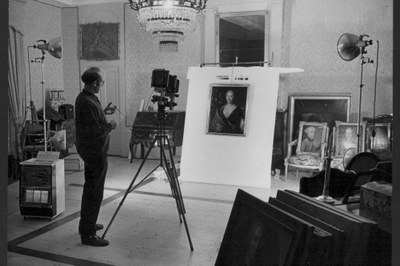 Gerhard Howald bei der fotografischen Dokumentation der Porträts auf Château de la Sarraz