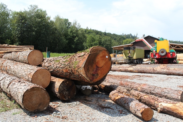Für die Velobrücke wurden 120 Baumstämme benötigt, hier auf dem Sägereiareal in Gümmenen