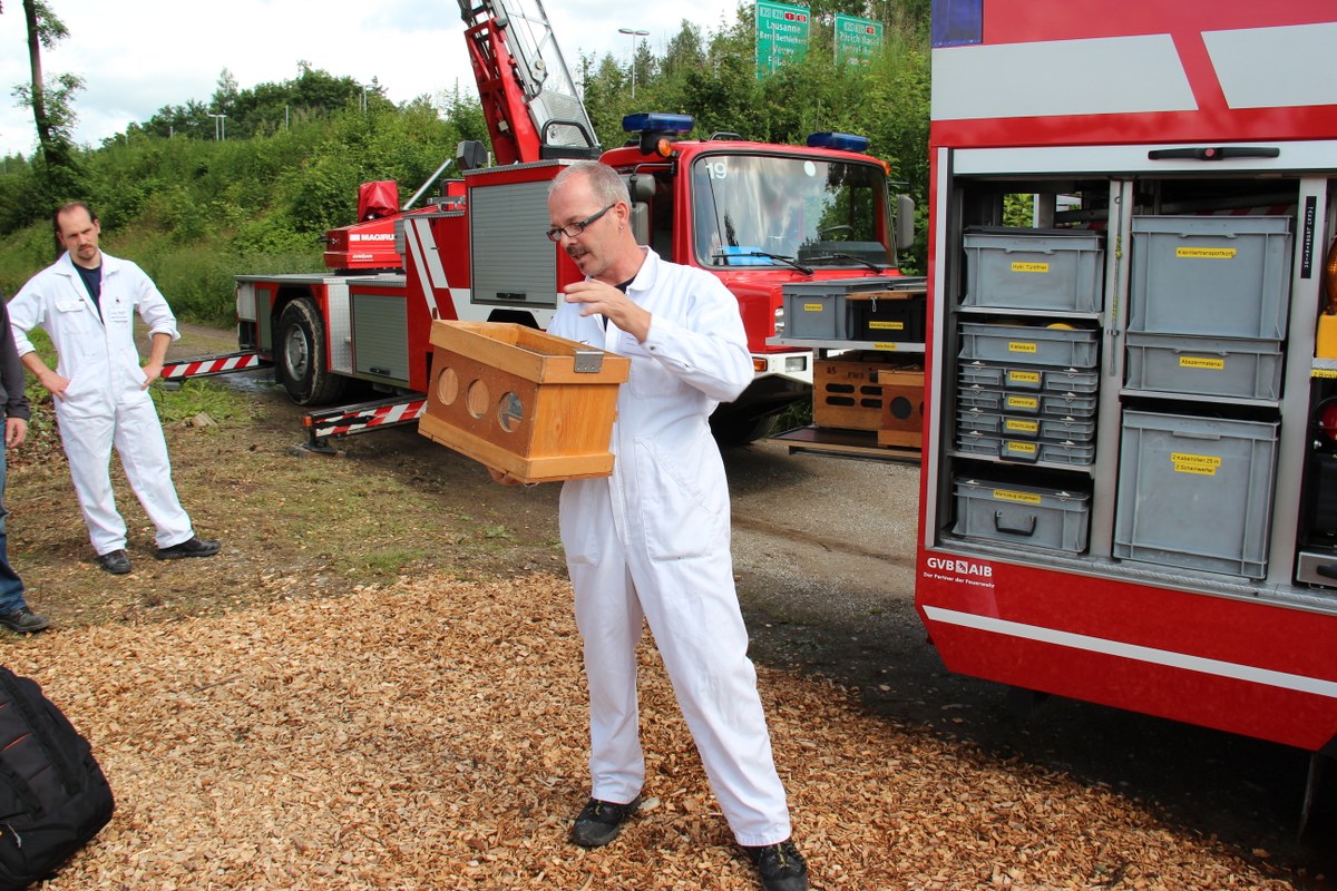 Weil die Überlebenschancen der Tiere aufgrund der flächendeckend vorhandenen Parasiten jedoch sehr gering sind, benötigen sie die Hilfe des Menschen. Bislang übergab die Feuerwehr die Bienenvölker direkt interessierten Imkerinnen und Imkern aus der Region. Ab sofort kommen die eingefangenen Schwärme jedoch in die neu geschaffene «Schwarmsammelstelle Region Bern» im Forsthaus West am Rand des Bremgartenwaldes. Dort, wohin ab kommenden November auch die Feuerwehr ihre Kommandozentrale verlegen wird, betreiben die beiden Imker Urs Emch und Werner Schläfli zuhanden des neuen Vereins die sechs Stationen der gesamtschweizerisch grössten Bienensammelstelle.