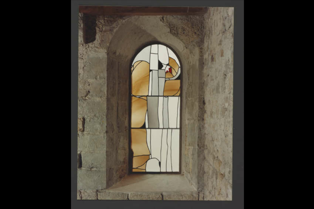 Glasfenster in der ehemaligen Klosterkriche auf der St. Petersinsel